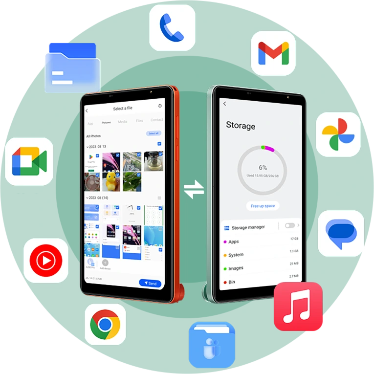 Mit dem Data Migration Assistant von LINK 2 können Sie Fotos, Apps, Einstellungen und mehr in wenigen Minuten von Ihrem alten Blackview- oder Android-Gerät übertragen. Einfach den QR-Code scannen und tippen – so einfach ist das.