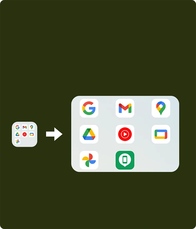 Größere Ordner bedeuten schlaueren Zugriff. Mit LINK 2 verbringen Sie weniger Zeit mit Suchen und mehr Zeit mit Tun – Apps bleiben organisiert, griffbereit und einsatzbereit, wenn Sie es sind.